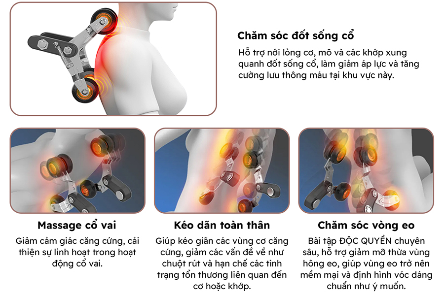 Kết cấu thẩm mỹ cùng các linh kiện hiện đại, đầy đủ các tính năng phụ như kết nối âm thanh bluetooth, bảng điều khiển cảm ứng tiếng Việt giúp gia tăng trải nghiệm massage vượt trội dành cho người dùng.