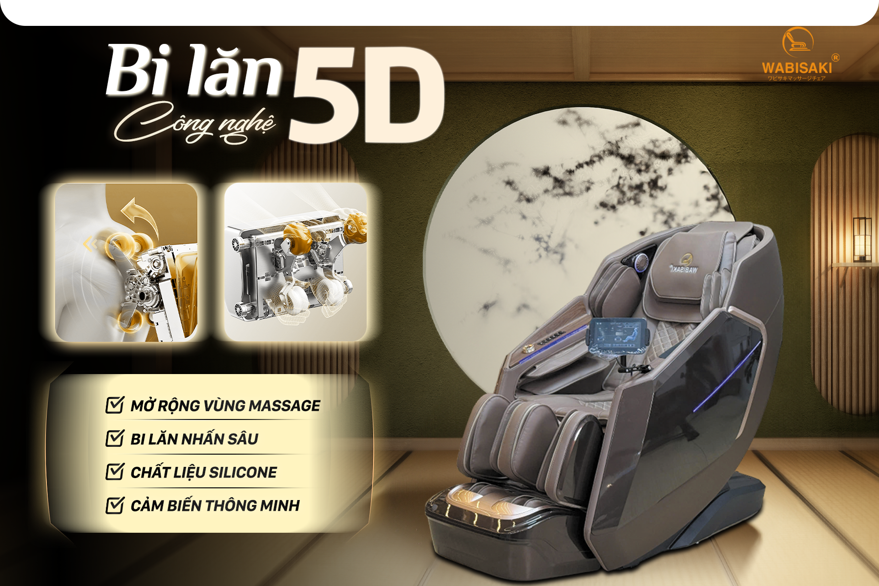 Ghế Massage Wabisaki W306x sử dụng công nghệ con lăn massage 5D di chuyển theo trục SL 145cm chuyên sâu với khả năng dò tìm huyệt đạo chính xác và ấn nhả linh hoạt, thực hiện được các động tác nhấn mạnh, nhấn sâu tùy chỉnh mang đến trải nghiệm thư giãn hoàn hảo.